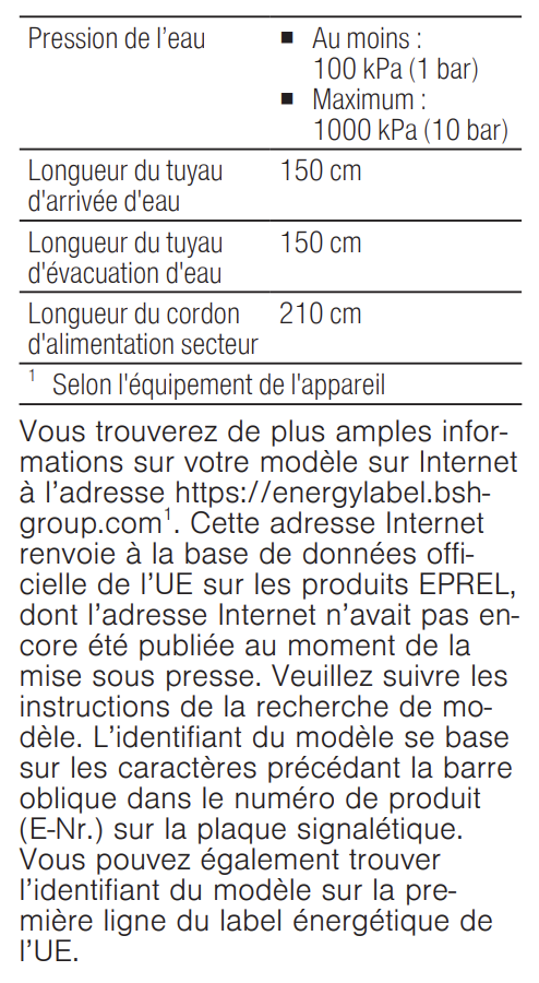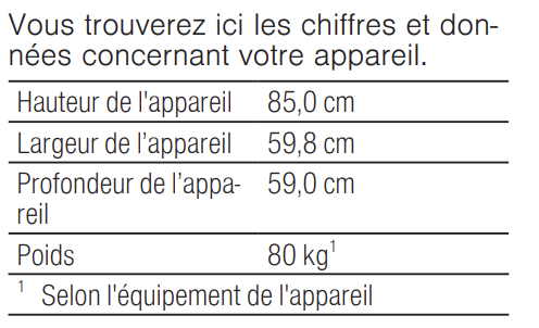Lisez le chapitre Données techniques dans entretien et dépannage de la notice