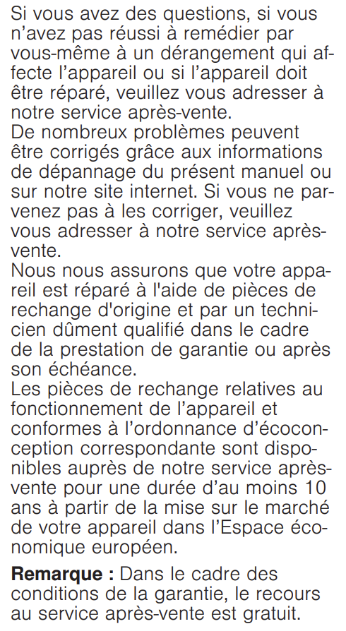 Lisez le chapitre Service après-vente dans entretien et dépannage de la notice