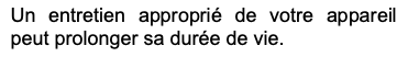Lisez le chapitre ENTRETIEN ET NETTOYAGE dans entretien et dépannage de la notice