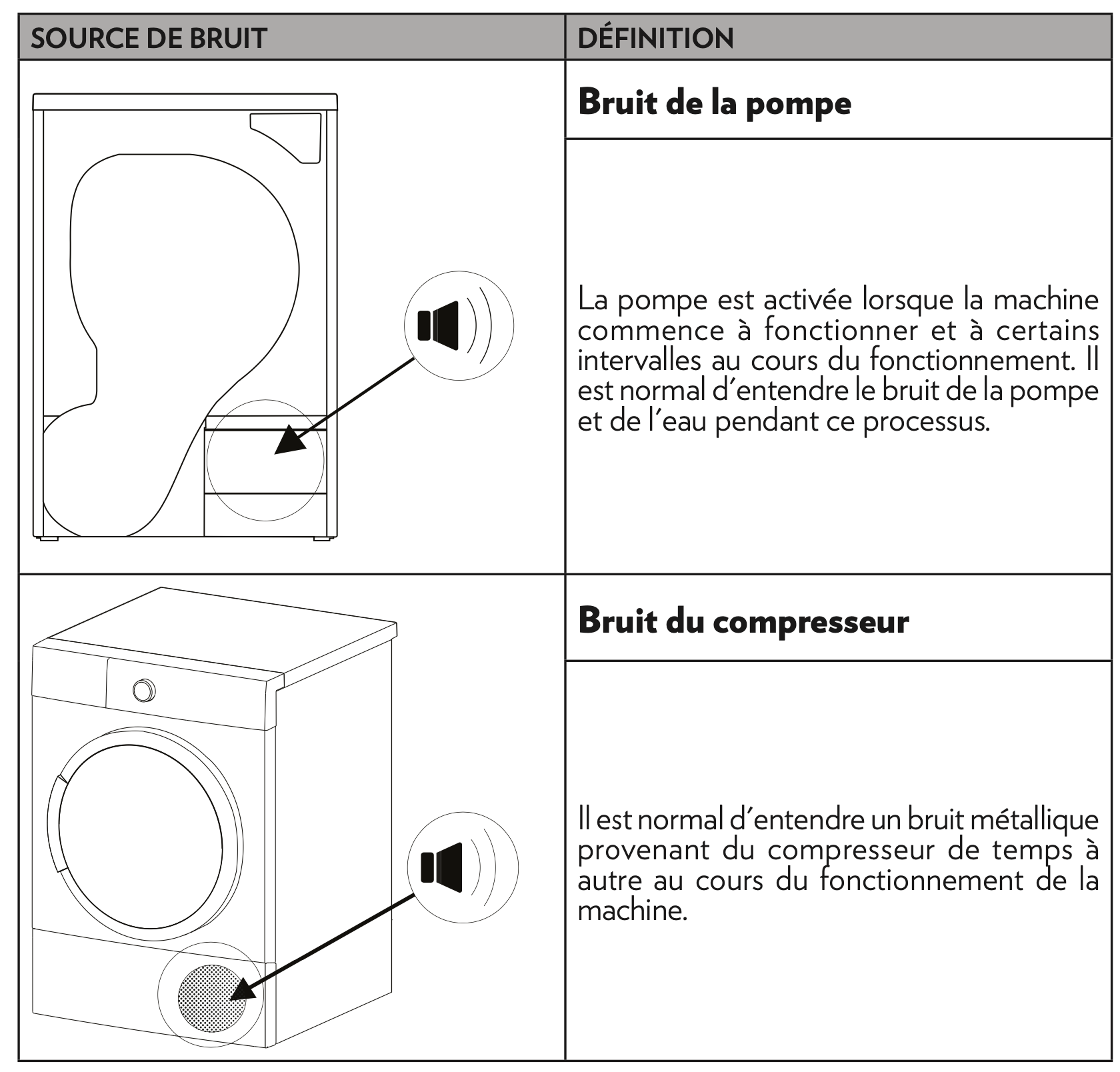 Lisez le chapitre BRUIT DE LA MACHINE dans entretien et dépannage de la notice