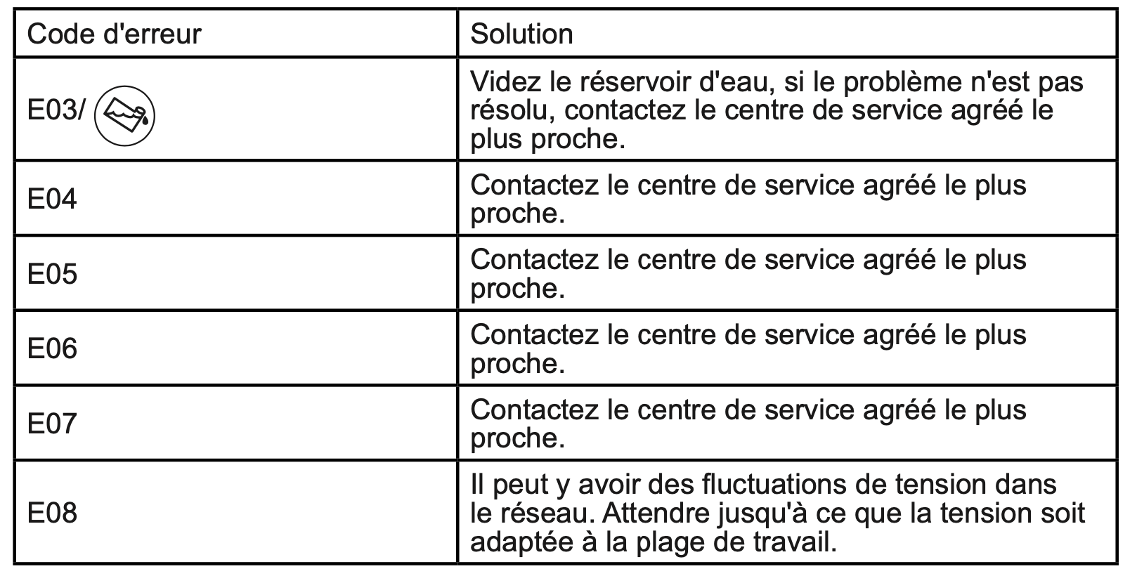 Notice Friac DKW1000E AVERTISSEMENTS AUTOMATIQUES DE DÉFAUTS ET CE QU’IL FAUT FAIRE