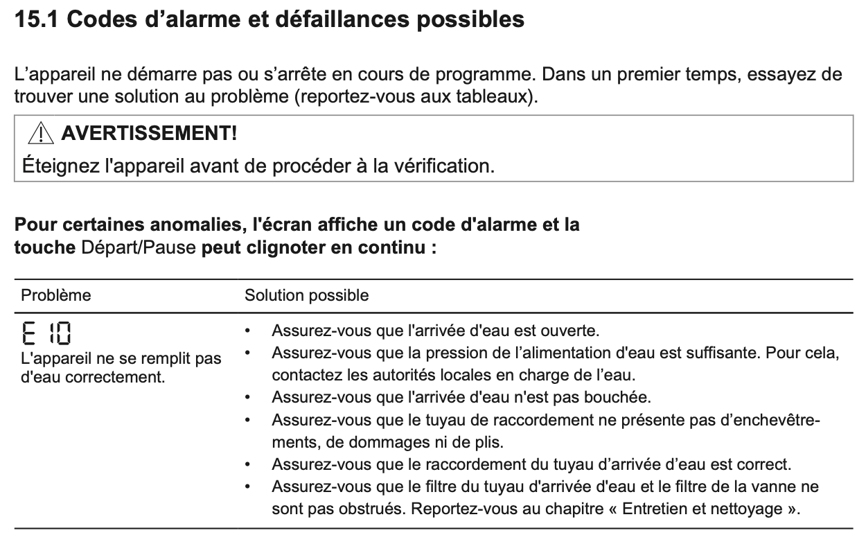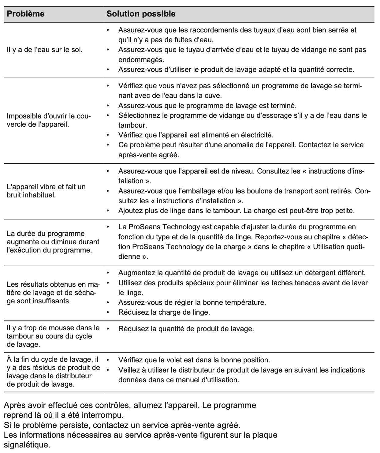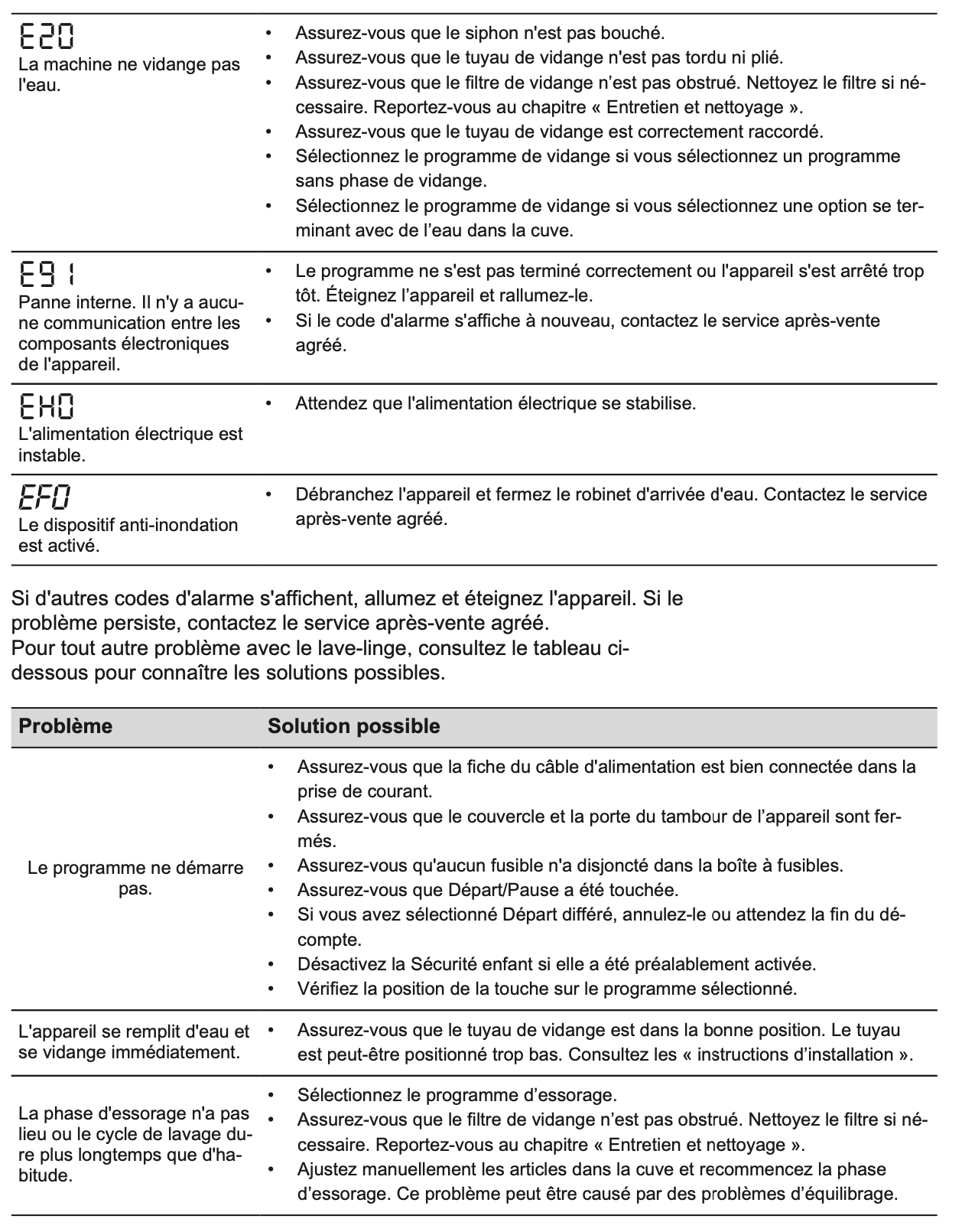 Lisez le chapitre DÉPANNAGE dans entretien et dépannage de la notice