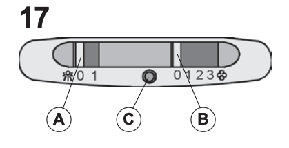 les filtres à graisse doivent être nettoyés environ toutes les 30 heures de fonctionnement (lorsque le témoin de la touche éclairage s’allume - Fig. 18S). Laver les filtres avec une lessive neutre. Une fois les filtres propres remontés, pour faire repartir le comptage, maintenir la pression pendant environ 1” sur la touche éclairage (Fig.18A) tandis que le témoin lumineux correspondant (S) est allumé.