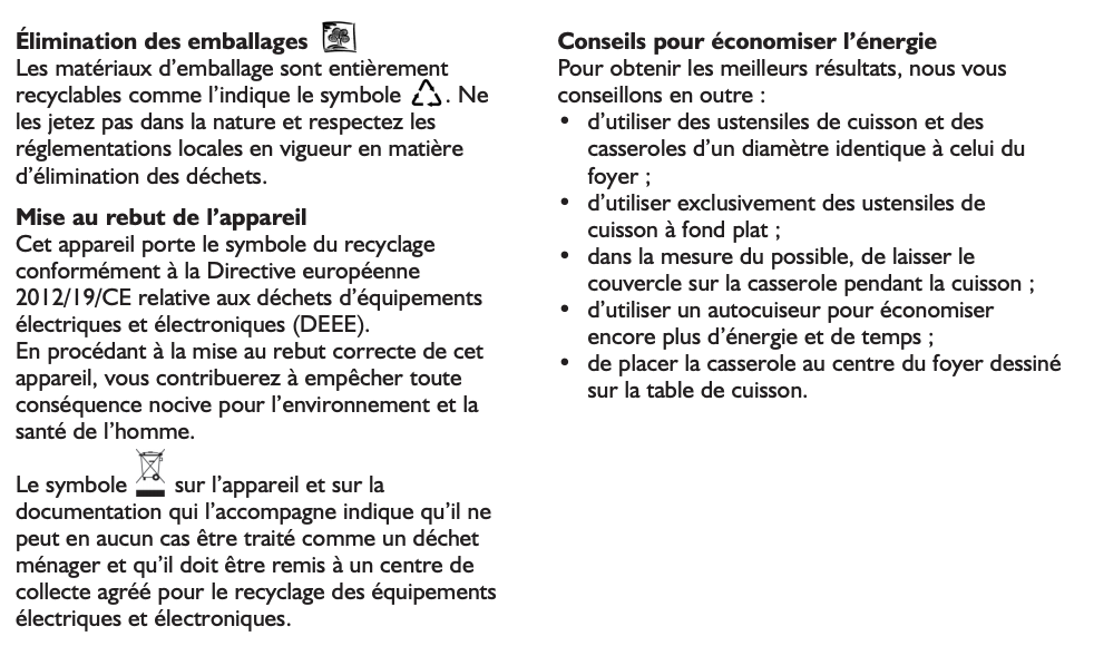 Lisez le chapitre Conseils pour la protection de l'environnement dans le mode d'emploi de la notice