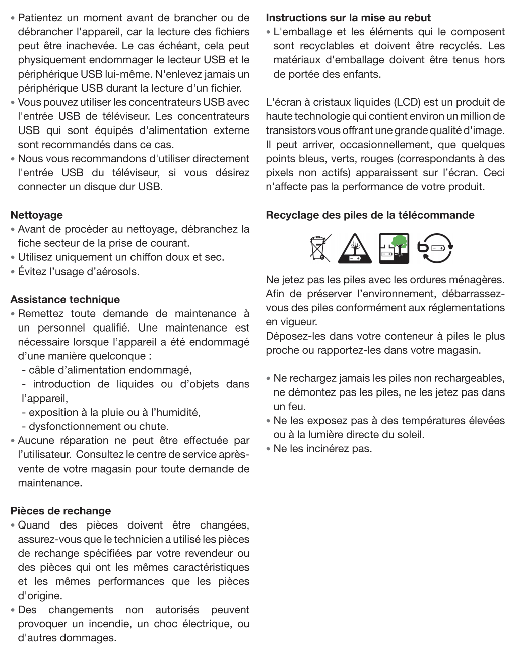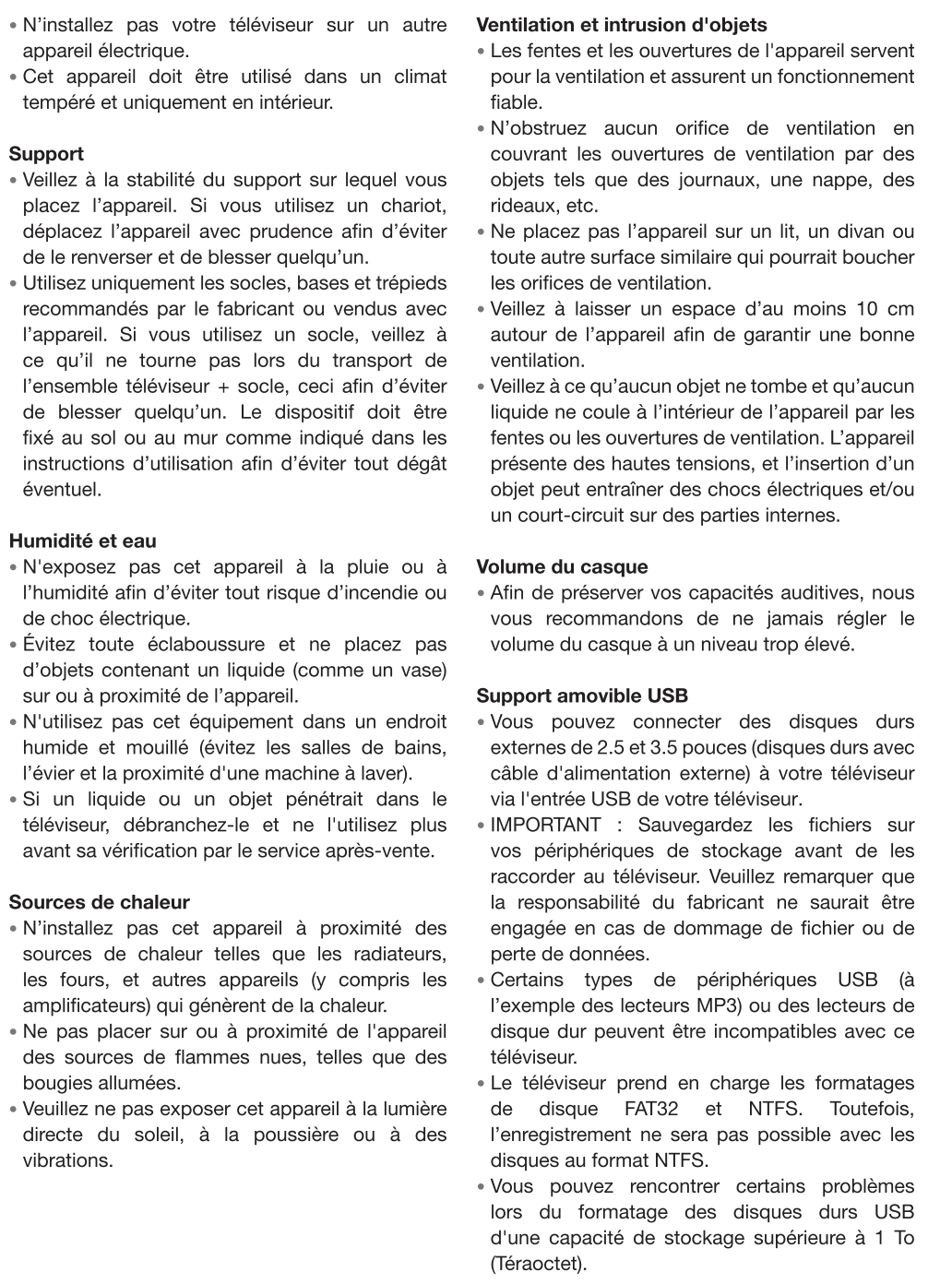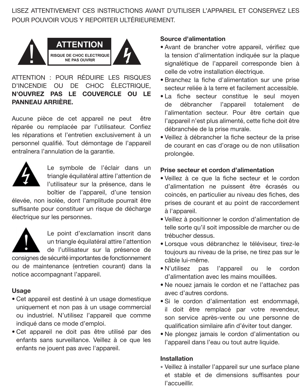 Notice Essentiel 65UHD-1291-SMART TV : Section Consignes d'usage
