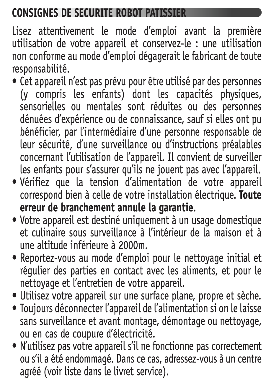 Lisez le chapitre Consignes de sécurité dans le mode d'emploi de la notice