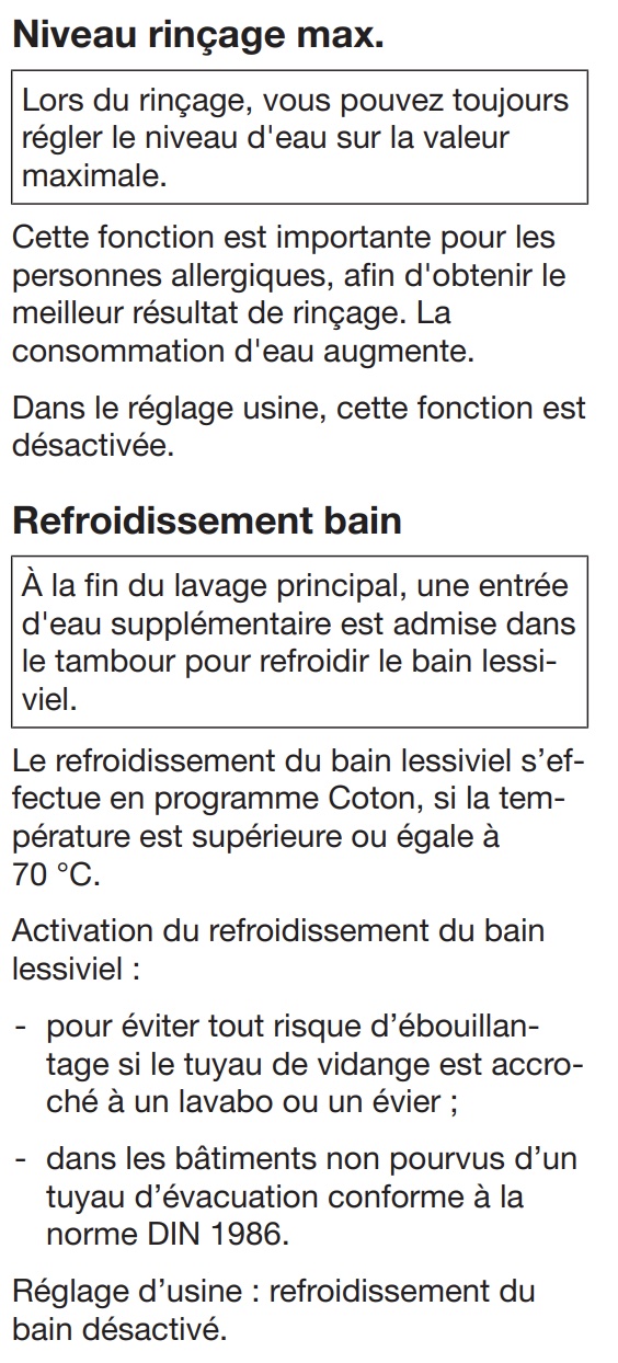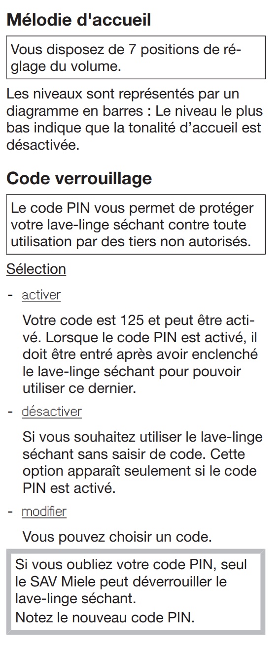 Notice Miele WTI 360 WPM : Section Réglages