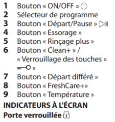Notice Whirlpool FFB7438BVFR : Section PANNEAU DE COMMANDE