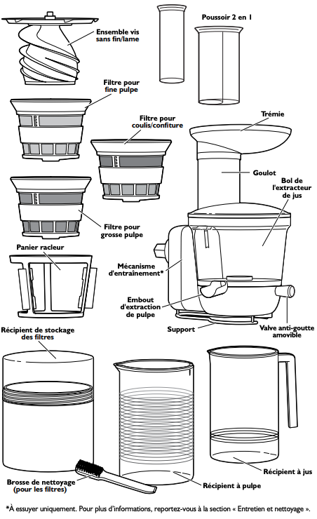 Notice Kitchenaid 5KSM1JA EXTRACTEUR DE JUS : Section Pièces et fonctions