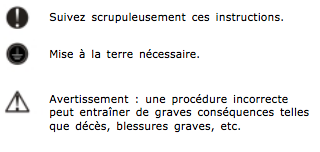 Lisez le chapitre PRESCRIPTIONS DE SÉCURITÉ dans le mode d'emploi de la notice