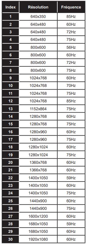 Lisez le chapitre Modes d’affichage typiques de l’entrée PC dans le mode d'emploi de la notice