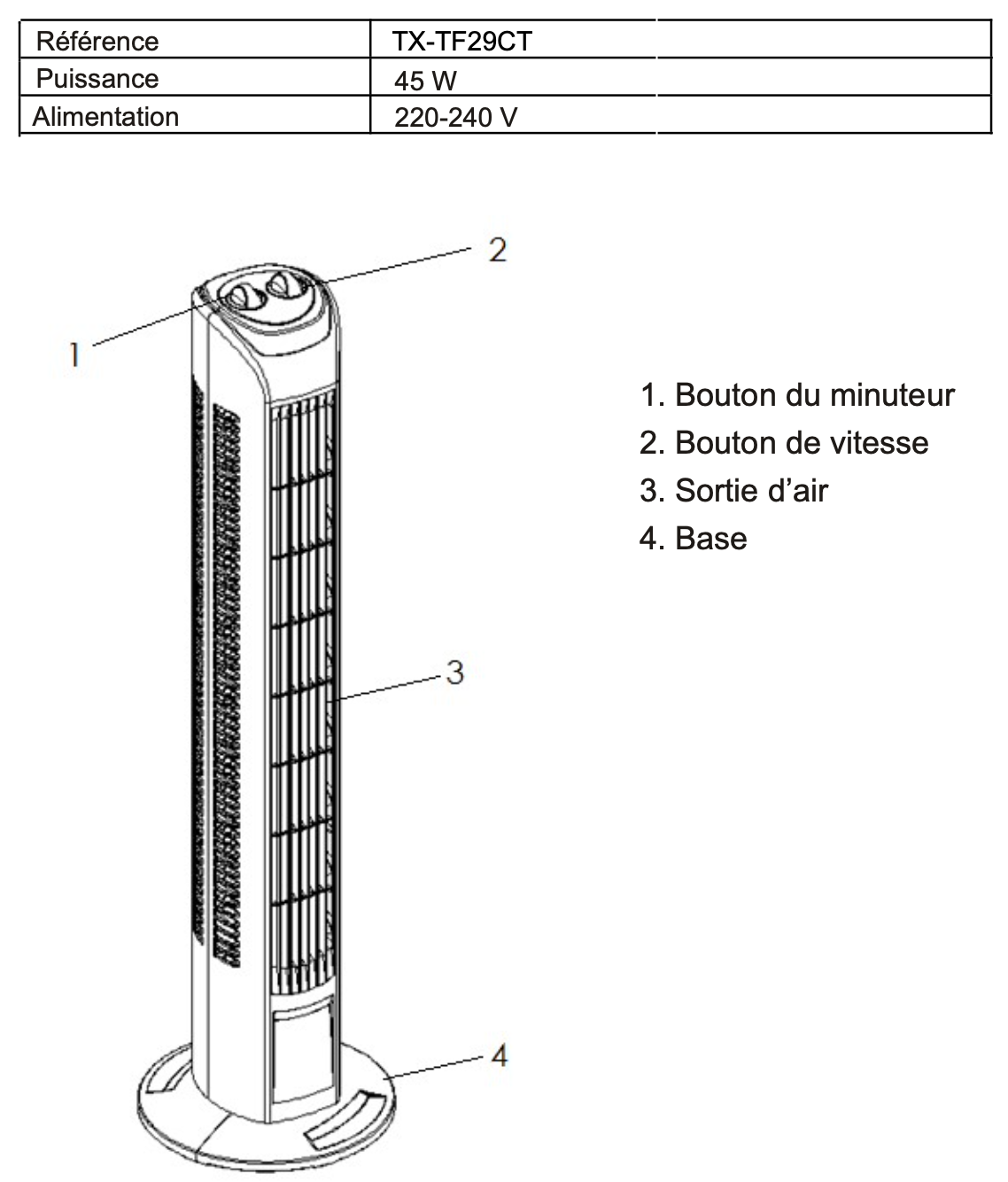 Notice California TX-TF29CT : Section DESCRIPTION DU PRODUIT