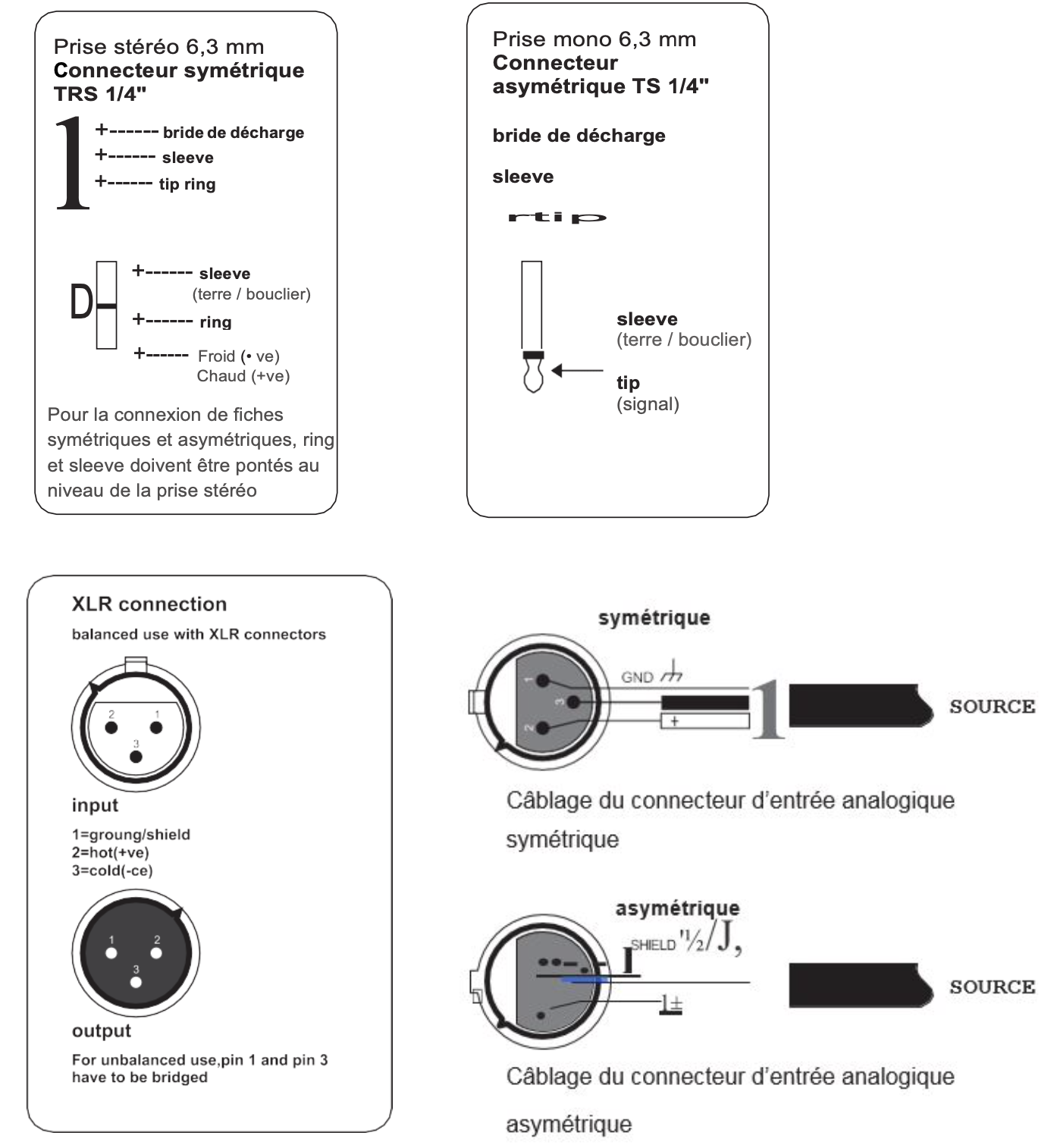 Lisez le chapitre Connecteurs d’entrée dans le mode d'emploi de la notice