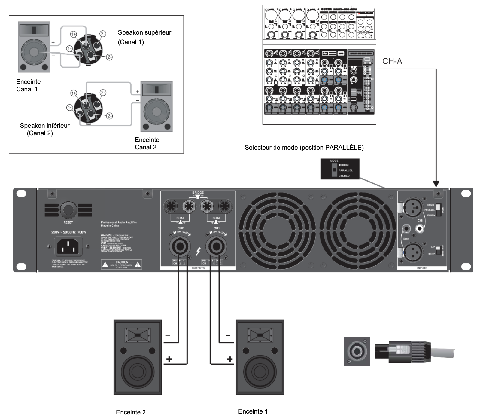 Utilisation du connecteur Speakon pour réaliser le mode de connexion parallèle
