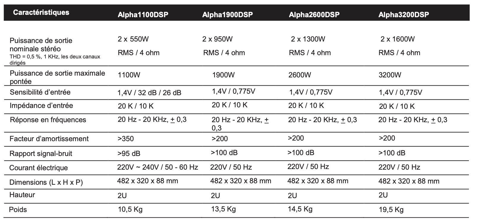 Notice Power Acoustics ALPHA 1100 DSP : Section Amplifier Specifications
