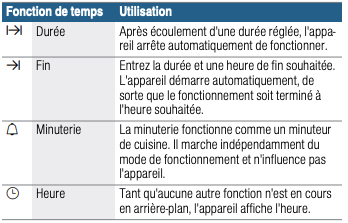 uniquement après le réglage d'un mode de cuisson. Après le réglage d'une durée, l'heure de la fin peut être appelée.