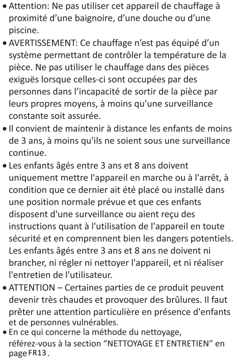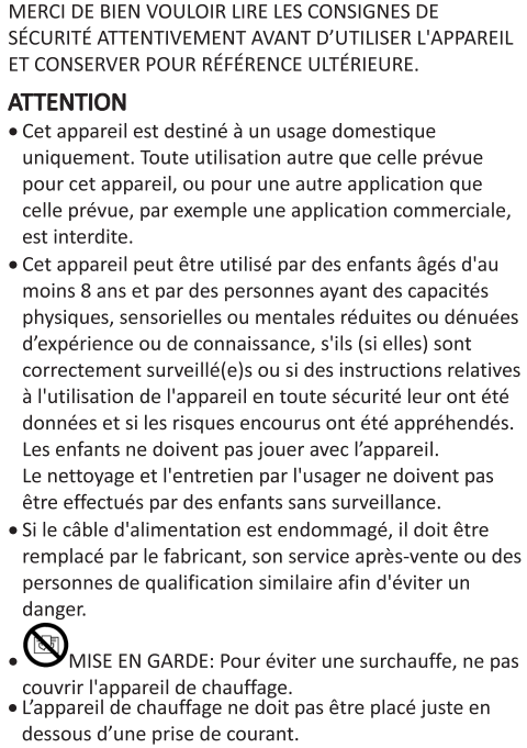 Lisez le chapitre MISE EN GARDE IMPORTANTES dans le mode d'emploi de la notice