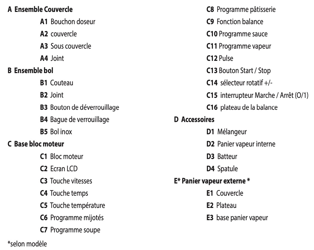 Notice Moulinex CLICKCHEF NOIR HF456810 + CUISEUR VAPEUR : Section DESCRIPTION DE L’APPAREIL