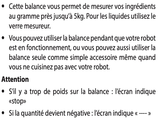 Notice Moulinex CLICKCHEF NOIR HF456810 + CUISEUR VAPEUR : Section BALANCE DE CUISINE INTÉGRÉE