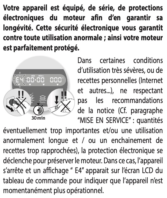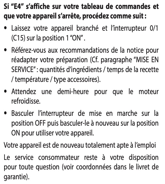 Notice Moulinex CLICKCHEF NOIR HF456810 + CUISEUR VAPEUR : Section IMPORTANT : MISE EN SECURITE DE L’APPAREIL ( E4)