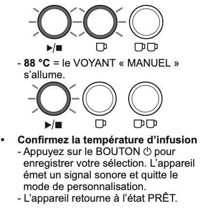 Lisez le chapitre TEMPÉRATURE D’INFUSION PERSONNALISABLE dans le mode d'emploi de la notice