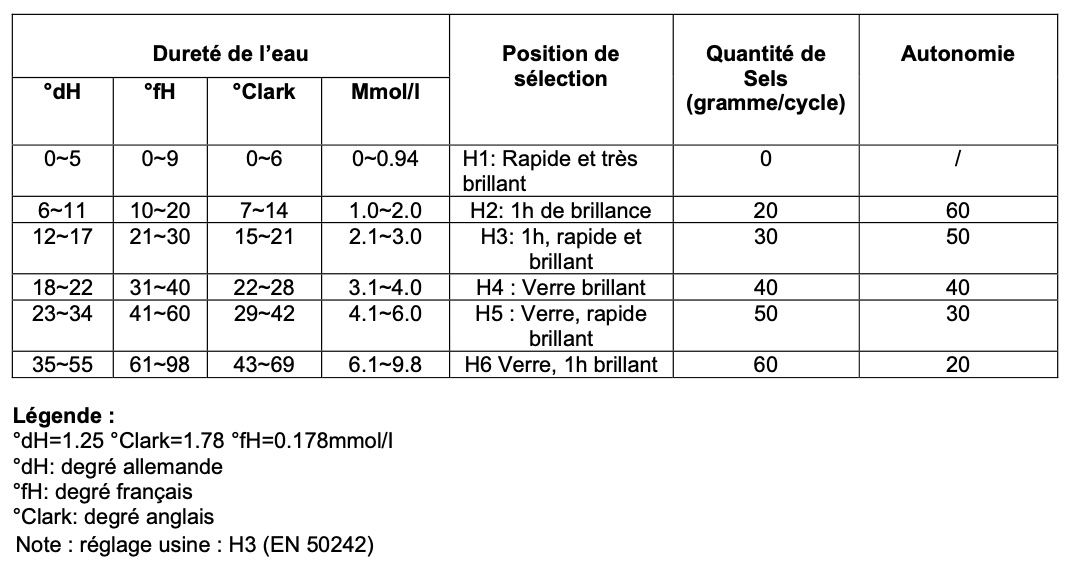 Lisez le chapitre ADOUCISSEUR D'EAU dans le mode d'emploi de la notice