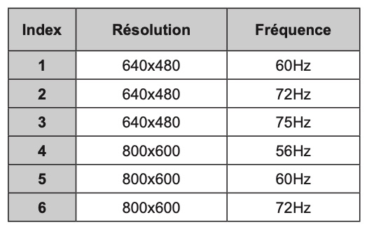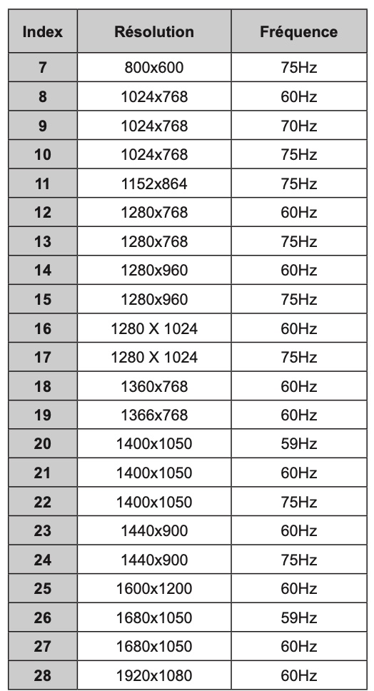 Lisez le chapitre Modes d’affichage typiques de l’entrée VGA dans le mode d'emploi de la notice