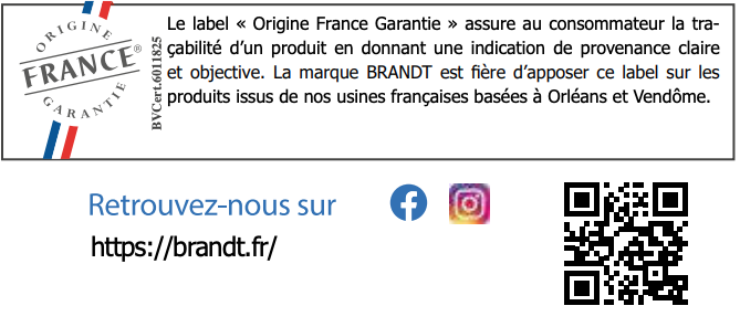 Connectez-vous aussi sur notre site www.brandt.com où vous trouverez nos dernières innovations, ainsi que des informations utiles et complémentaires.