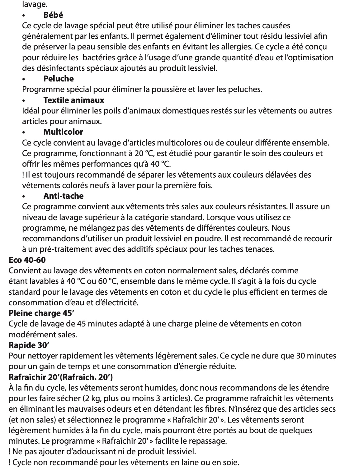 Notice Whirlpool W6W045WBPFR : Section PROGRAMMES