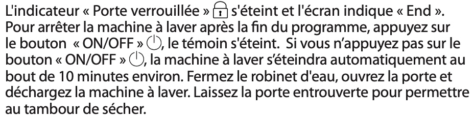 Notice Whirlpool FFB7458BVFR : Section FIN DU PROGRAMME