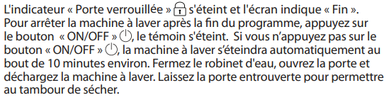 la technologie NFC et lisez directement le chapitre FIN DU PROGRAMME dans le mode d'emploi
