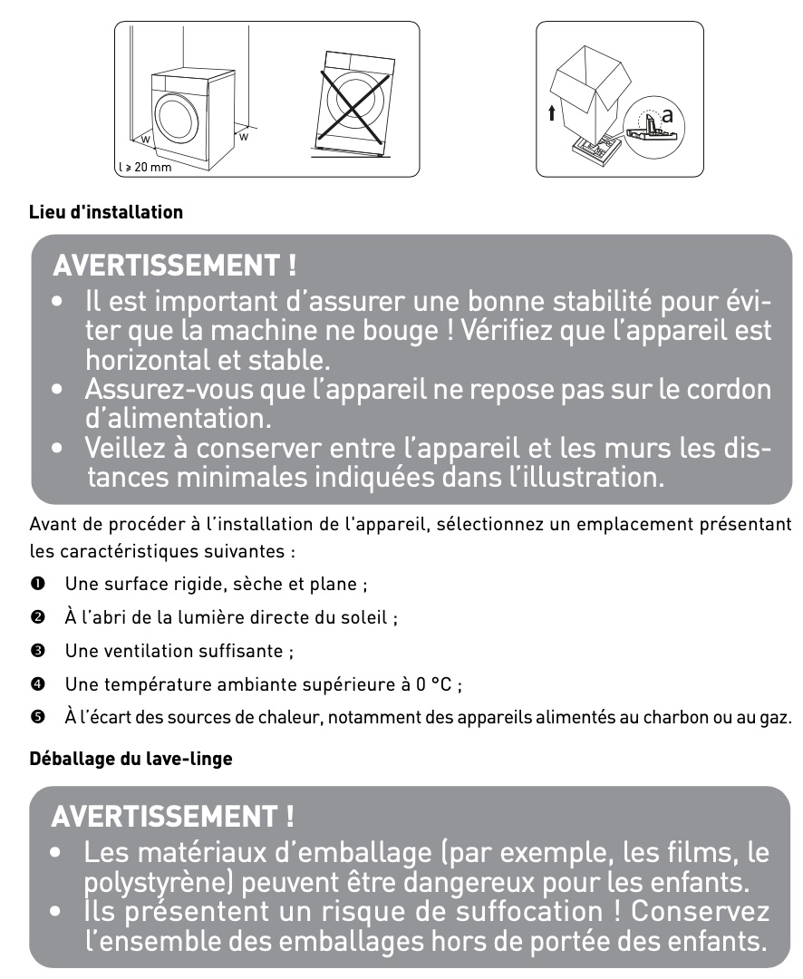 Notice Valberg WF1214BW566C : Section Installation