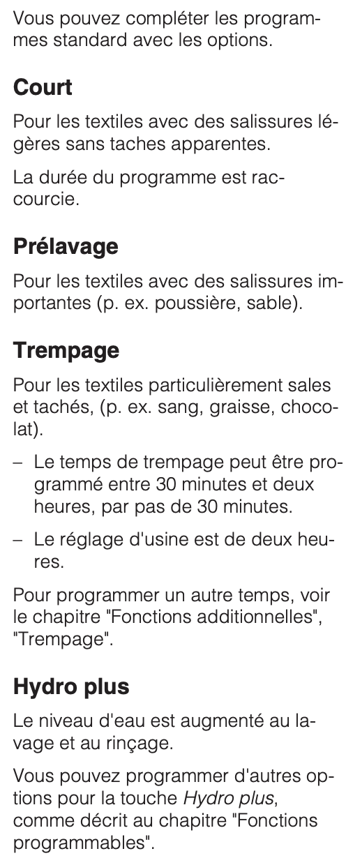 Notice Miele W3370 : Section Options