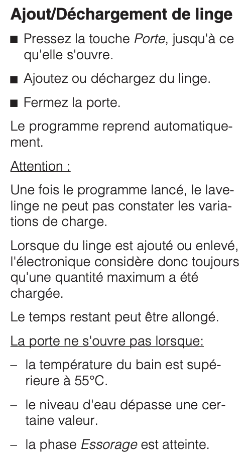 Notice Miele W3370 : Section Modification du déroulement de programme