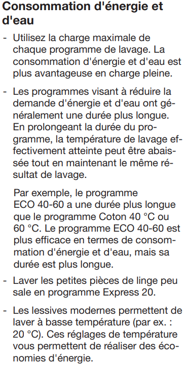 Lisez le chapitre Lavage écologique dans le mode d'emploi de la notice