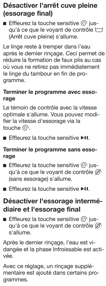 Lisez le chapitre Essorage dans le mode d'emploi de la notice