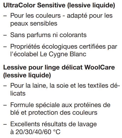 Lisez le chapitre Lessive et produits d'entretien dans le mode d'emploi de la notice