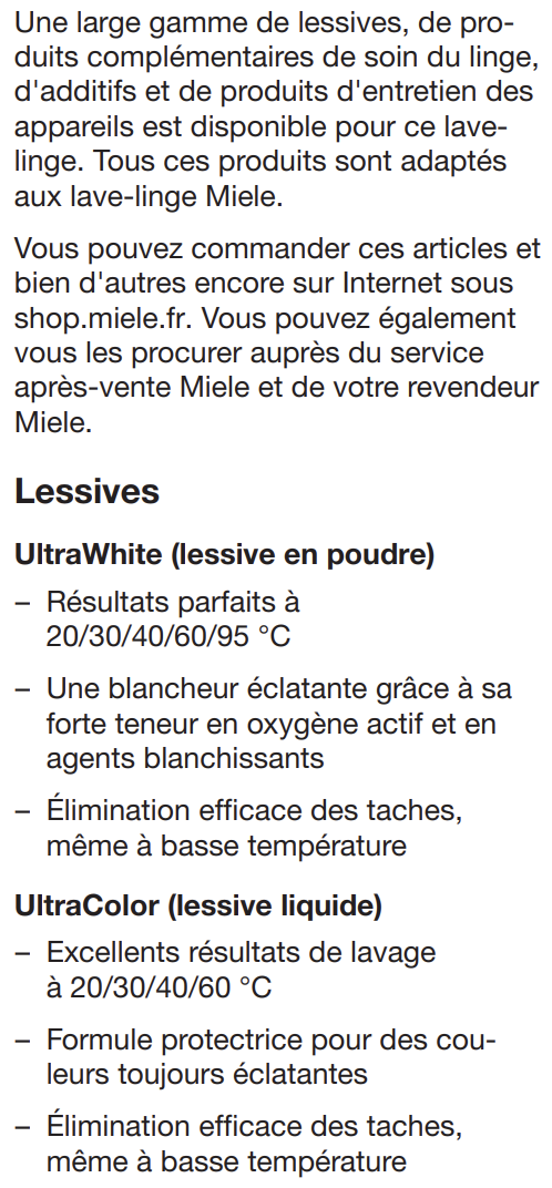 Notice Miele WWD020 : Section Lessive et produits d'entretien