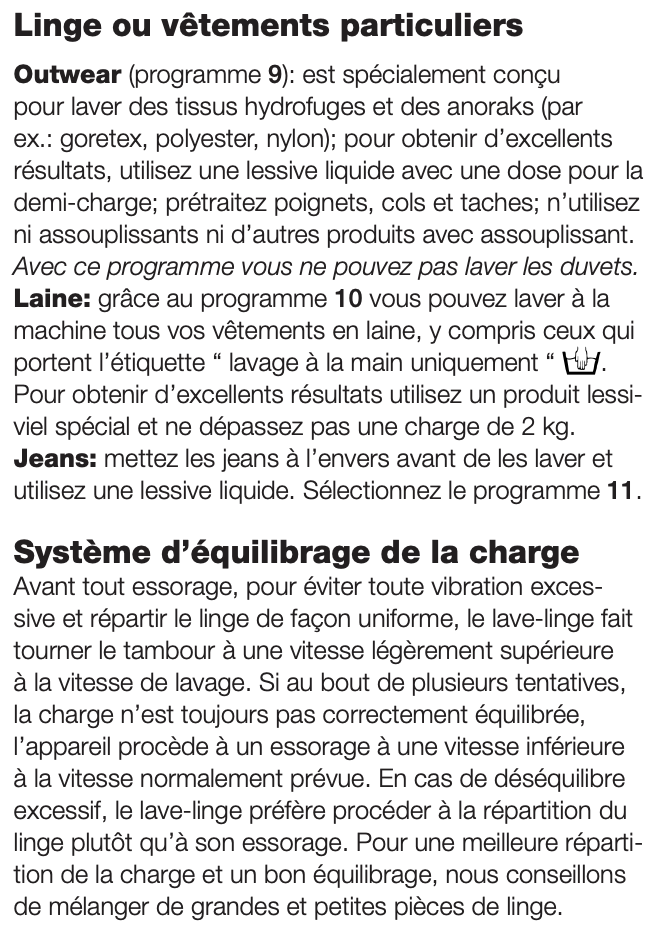 Lisez le chapitre Produits lessiviels et linge dans le mode d'emploi de la notice