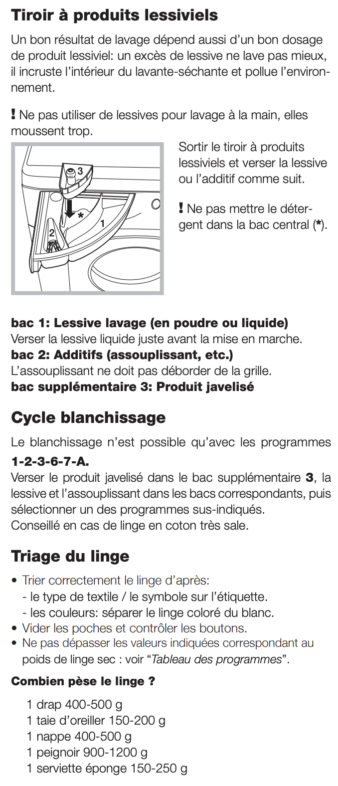 Lisez le chapitre Produits lessiviels et linge dans le mode d'emploi de la notice