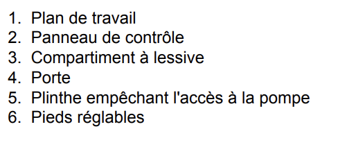 Lisez le chapitre DESCRIPTION DE VOTRE MACHINE A LAVER dans le mode d'emploi de la notice
