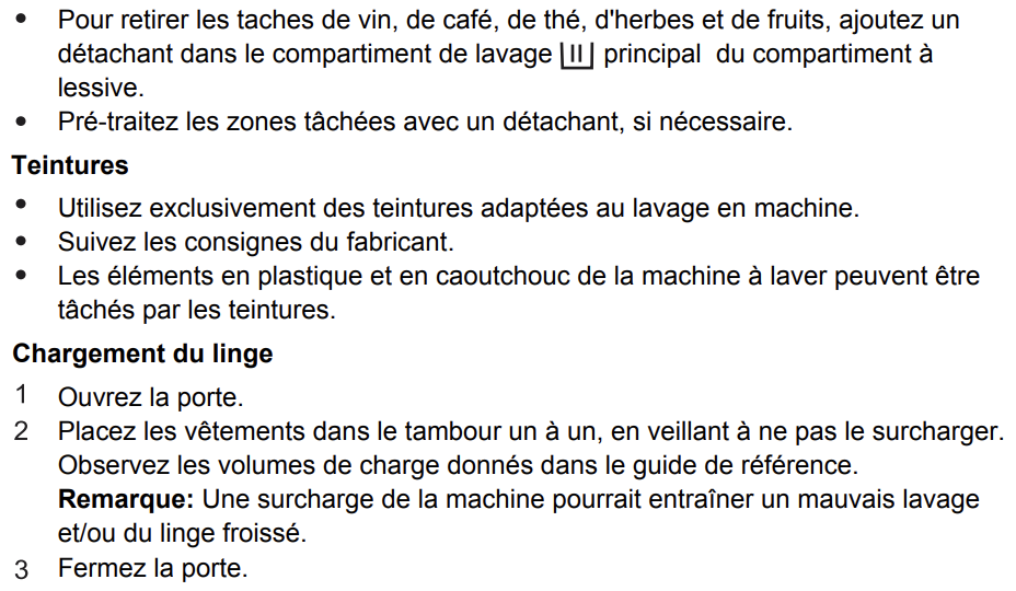 Lisez le chapitre PREPARATION DU LAVAGE dans le mode d'emploi de la notice