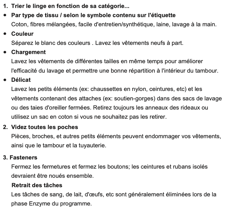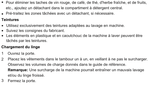 Lisez le chapitre PREPARATION DU LAVAGE dans le mode d'emploi de la notice