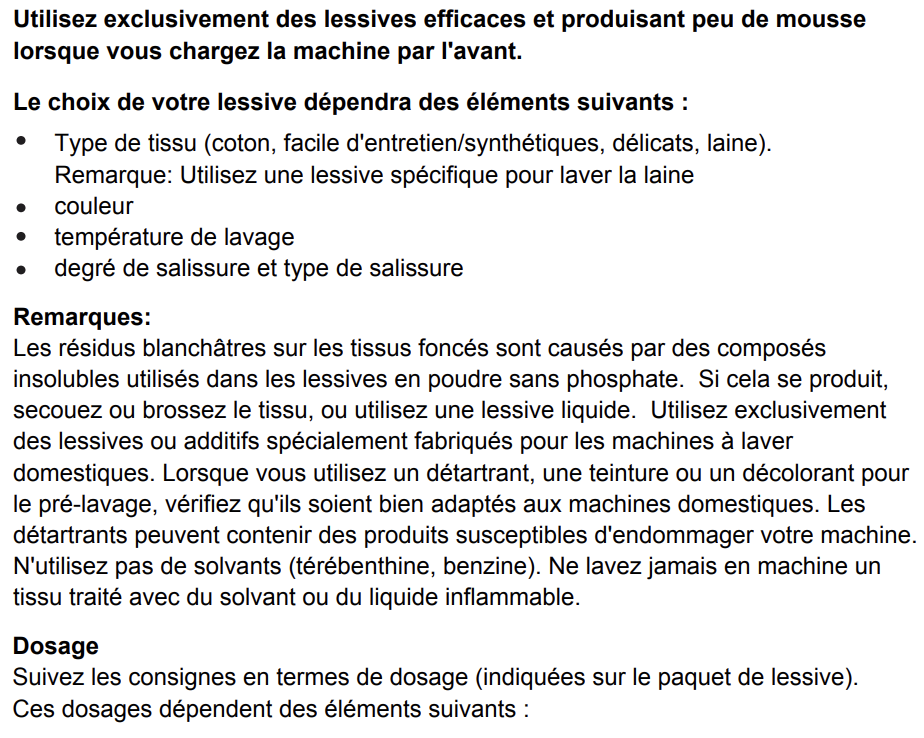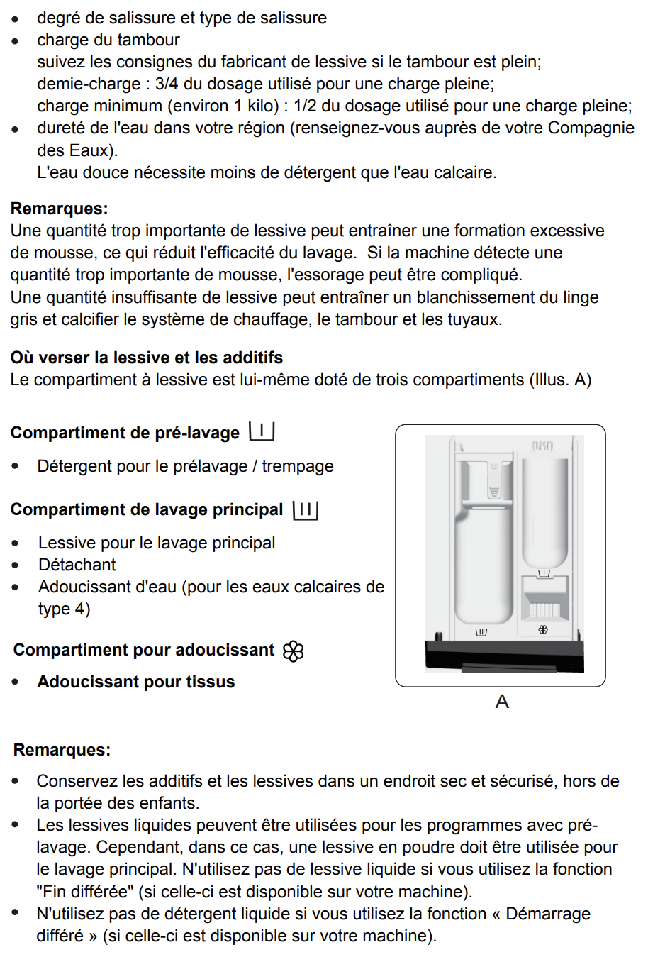 Lisez le chapitre LESSIVE ET ADDITIFS dans le mode d'emploi de la notice
