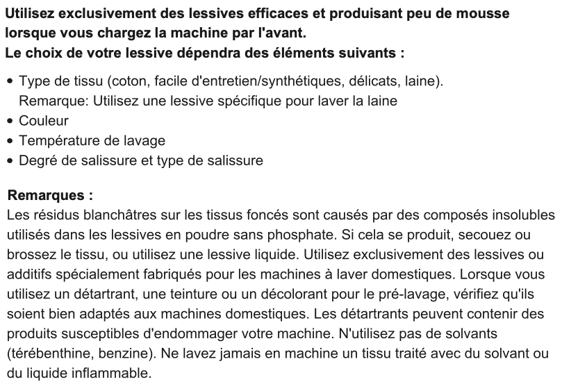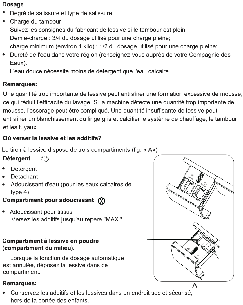 Lisez le chapitre LESSIVE ET ADDITIFS dans le mode d'emploi de la notice