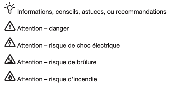 Les pictogrammes figurant dans cette notice ont les significations suivantes :