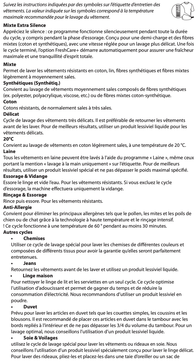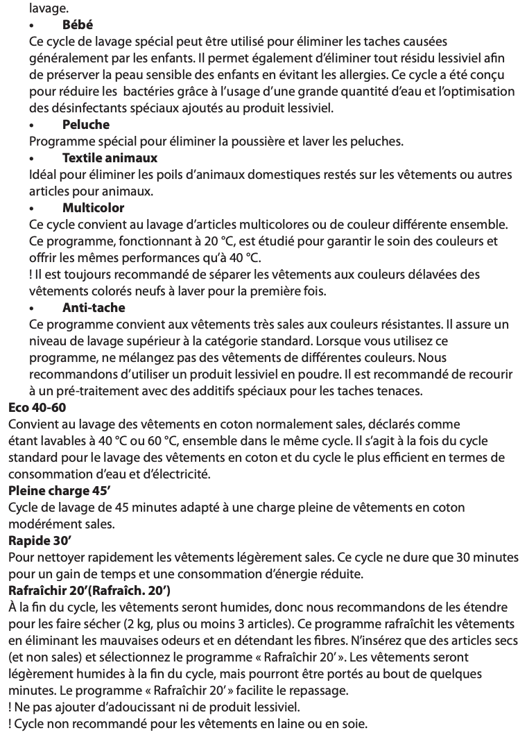 Notice Whirlpool W6XW845WRFR : Section PROGRAMMES