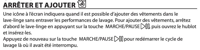 Notice Whirlpool W6XW845WRFR : Section ARRÊTER ET AJOUTER