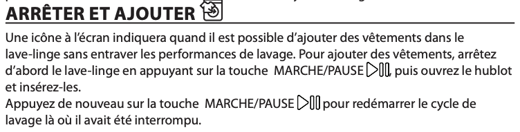 Notice Whirlpool W8W046WBFR : Section ARRÊTER ET AJOUTER