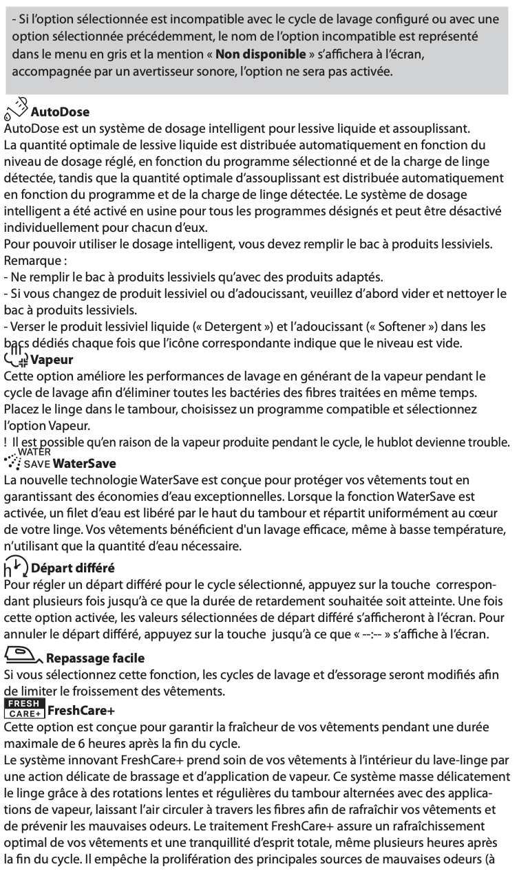 Notice Whirlpool W8W046WBFR : Section OPTIONS